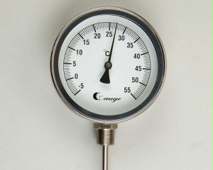 双金属温度计是基于绕制成环性弯曲状的双金属片组成。一端受热膨胀时,带动指针旋转,工作仪表便显示出热电势所应的温度值。 |