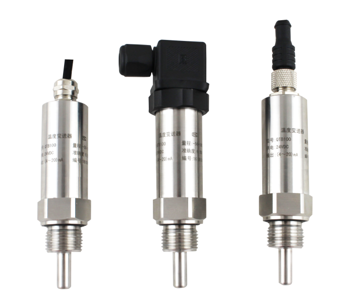 温度变送器采用PT100作为信号测量元件。放大电路位于不锈钢壳体内,将传感器信号转换为标准信号。整个产品经过了元器件、半成品及成品的严格测试及老化.