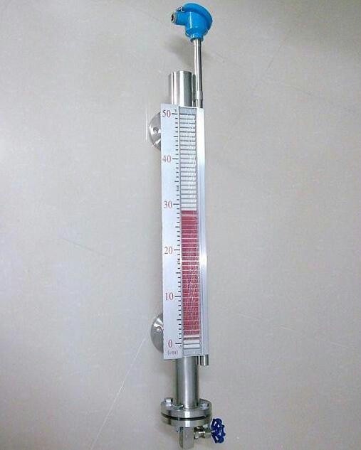 液位计根据浮力原理,浮子在测量管内随液位的升降而上下移动,浮子内的永久磁钢通过磁耦合作用,驱动红、白色翻柱翻转180’液位上升时,翻柱由白色转为红色,下降时,翻柱由红色转为白色,从而实现液位的指示。